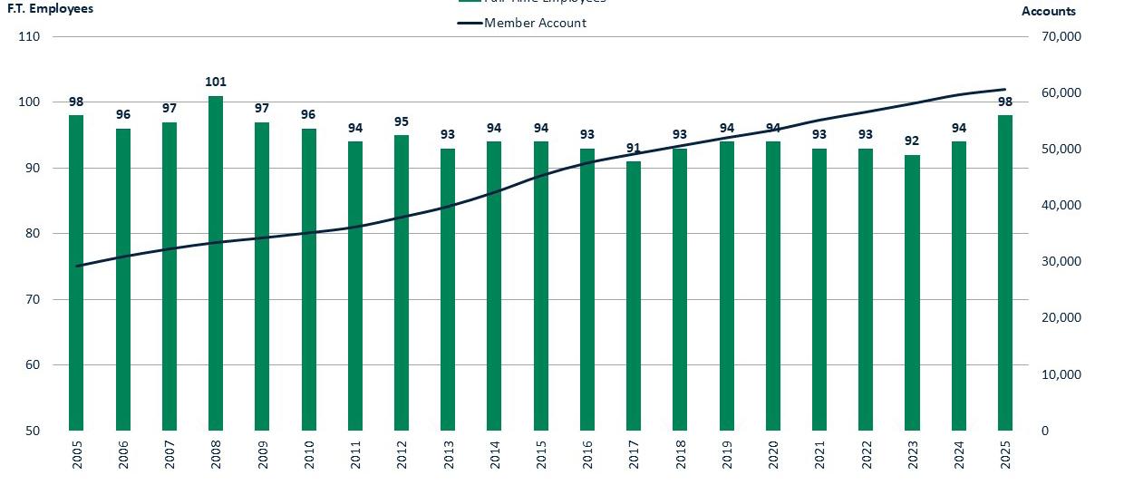 Adding new accounts and maintaining employee count by utilizing innovative technology helps us maintain cooperative expenses, saving you money.