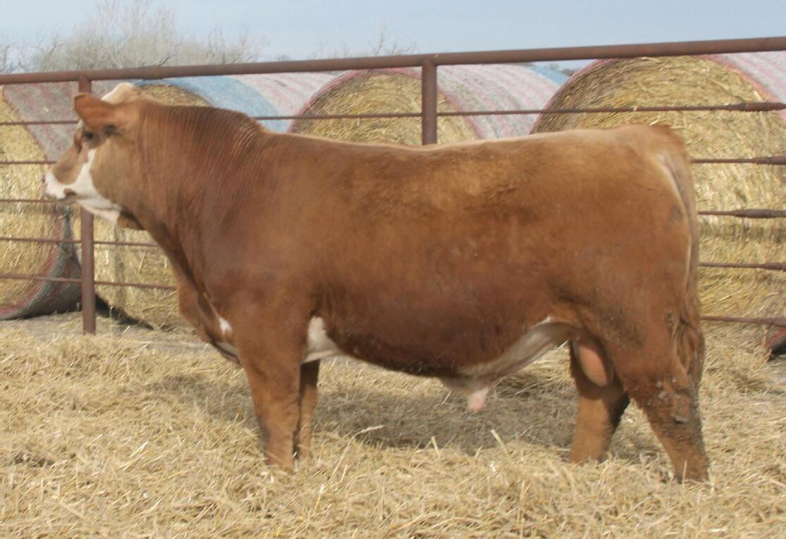 Here is a big, stout rugged-made kind of bull. Lots of stretch in him as well. Can add some frame too! Clean in his lines. Look him up on sale day!