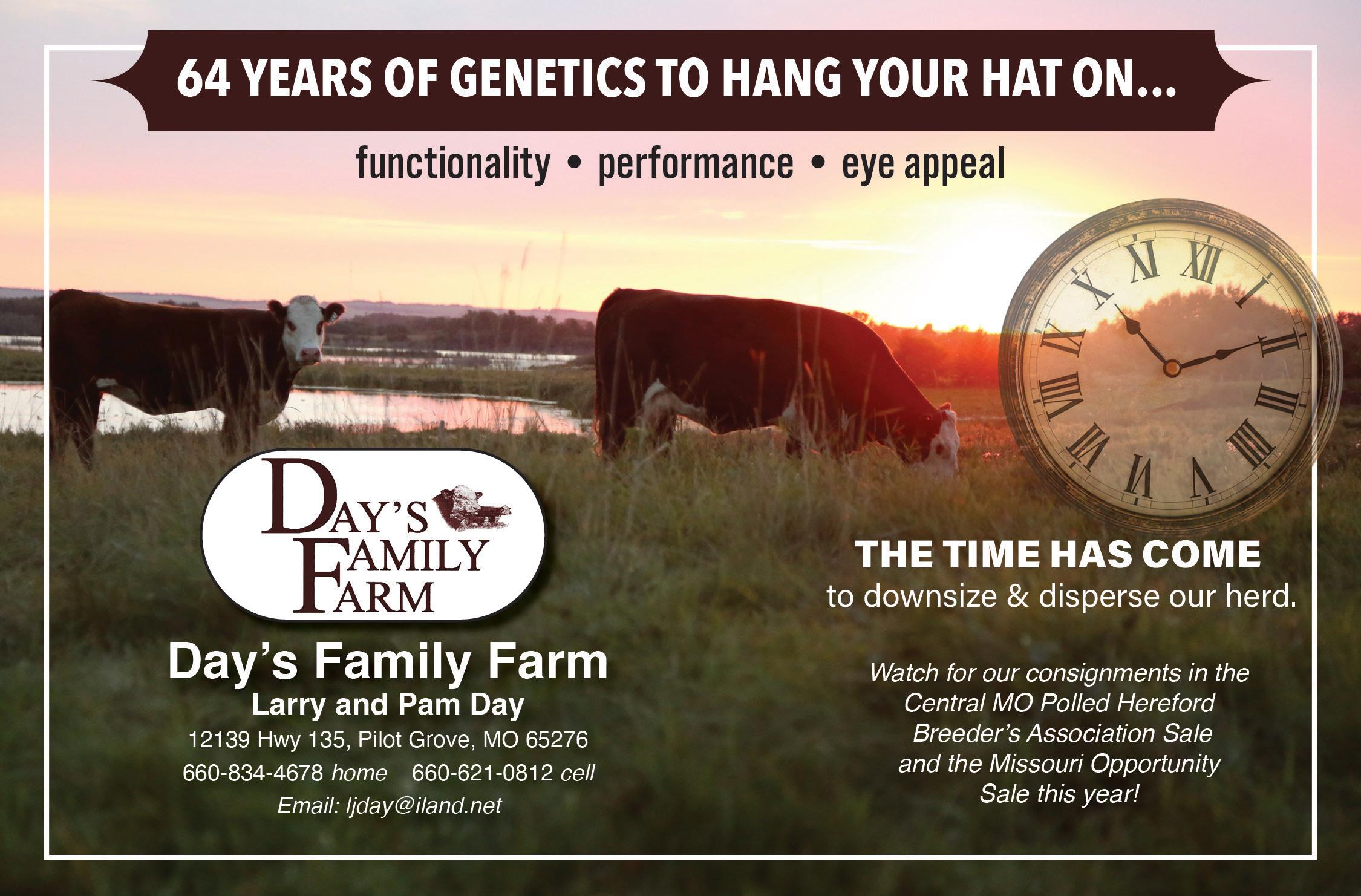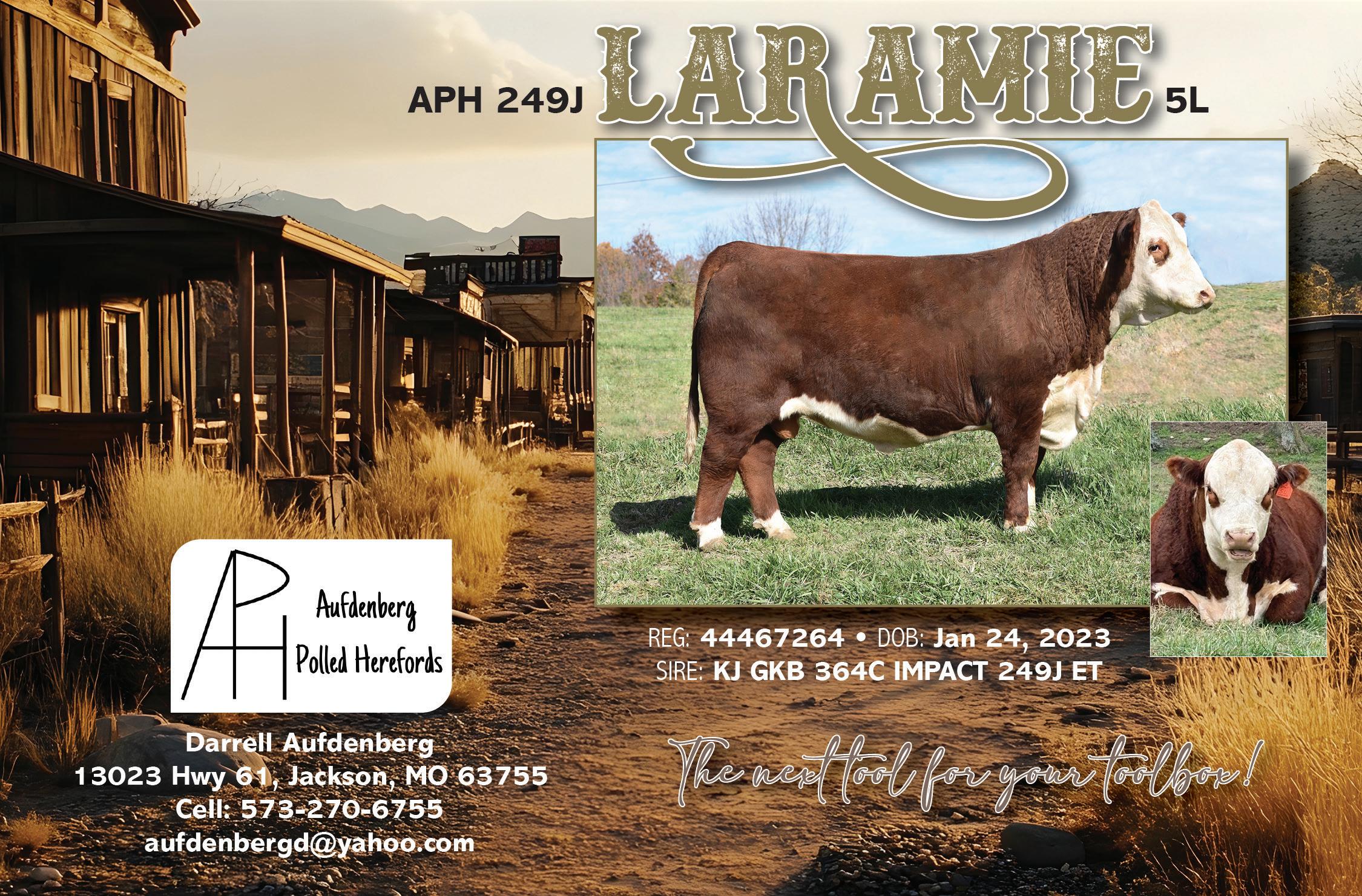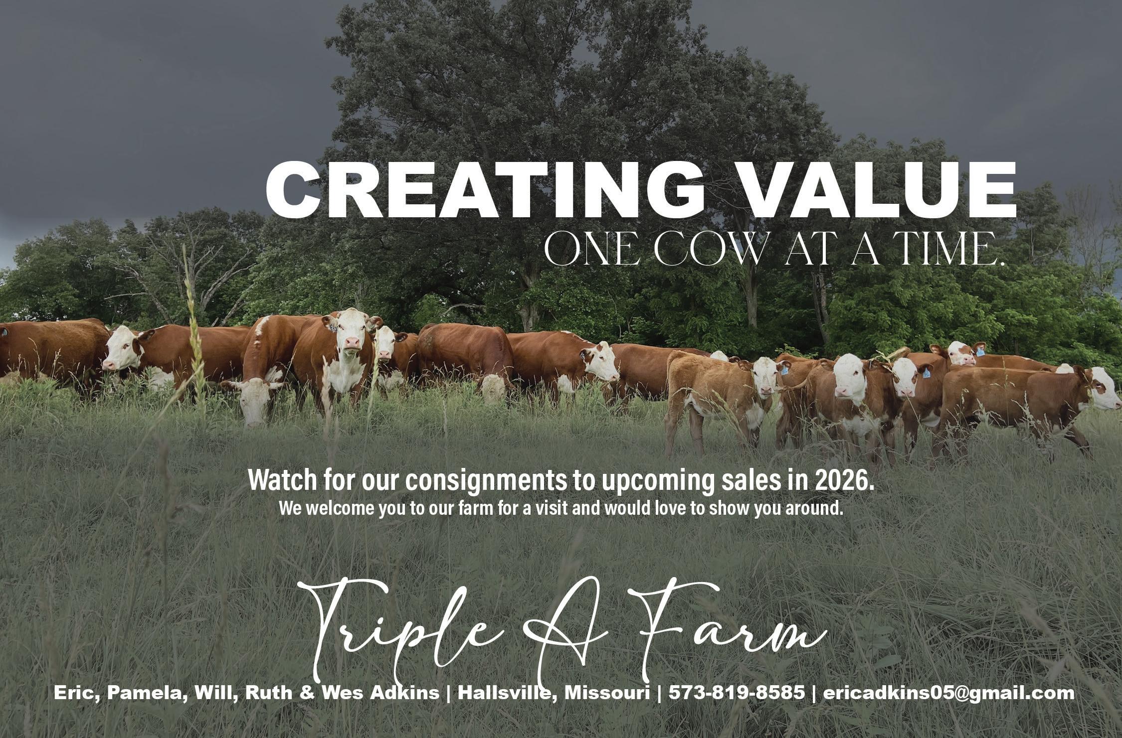 As your plans are being made, be sure to find on page 9 of this issue the rules and recommendations for participating in the Missouri Opportunity Sale. You can also find information and forms on the Missouri Hereford Association (MHA) website at moherefords.org. The results of last year's sale are also in this issue.