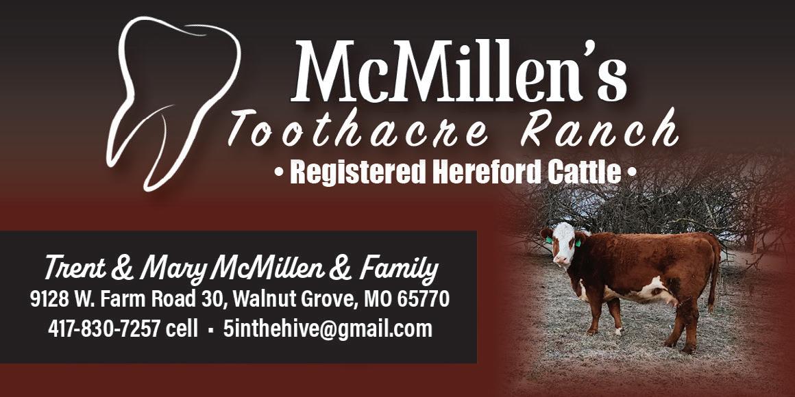 Please remember to share news and announcements with us as they arise! We are incredibly grateful for your support as we share Missouri Hereford news and beyond through this magazine, the MHA website and Facebook page. Cheers!