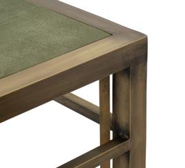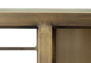 Specifications: stained solid beech structure - patinated brass inlay with two brass cladded drawers - brass shoes