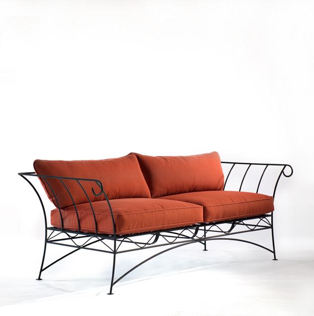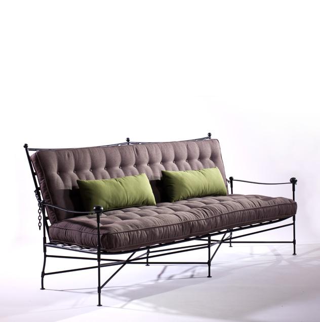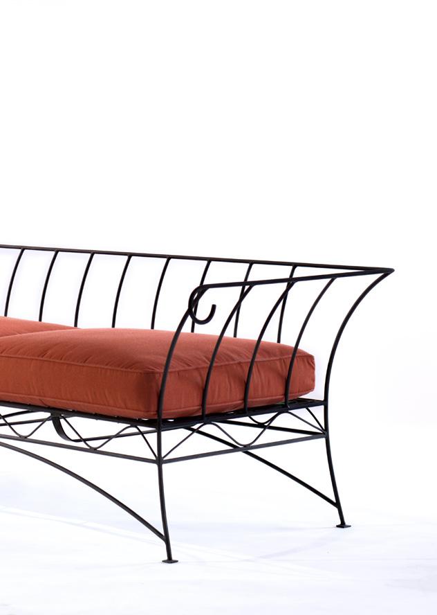 B.B. - The decorative light framework holds an elasticated webbed base giving the cushions a comfortable springiness. This sofa sits well in the garden or on a terrace and also works well in pairs as an external sitting area. I love the contours, which look great viewed from any angle