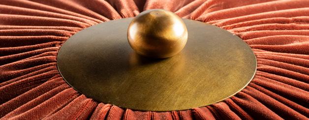 B.B. - Inspired by Etruscan designs, it can be used either behind a sofa or as a great object table against the wall. Its construction allows for a rather satisfying springiness. I love the rebated brass discs in the top. A sandwich of three sheets of oak, the grain running at right angles to prevent movement