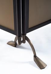 B.B. - Drawn up in front of a fire, at the end of a bed or simply in front of a window. I love the contrast of the bronze panels and ebonized wood. Works very well in pairs