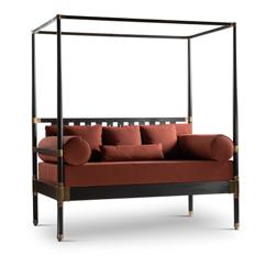 B.B. - Although coming from the same stable as the bone bed, its pronounced baroque headboard and complex iron roof gives this bed a wonderful understated grandeur