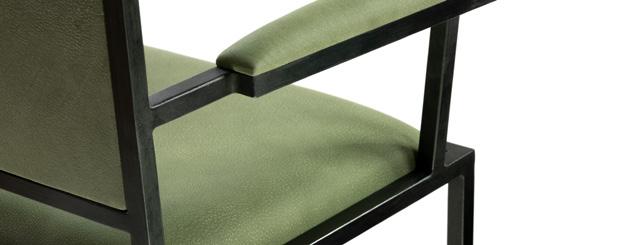 Specifications: polished steel or powder coated frame leathered upholstered seat, armrests and backrest