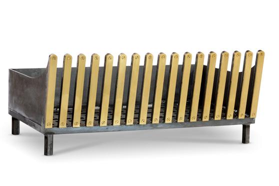 B.B. - I designed this lower grate for a barn that we transformed at Reschio. The front is faced in brass, while the rest of the grate remains a solid steel piece, creating almost a basket, a feeding trough. It is a nod to the barn’s previous agricultural use