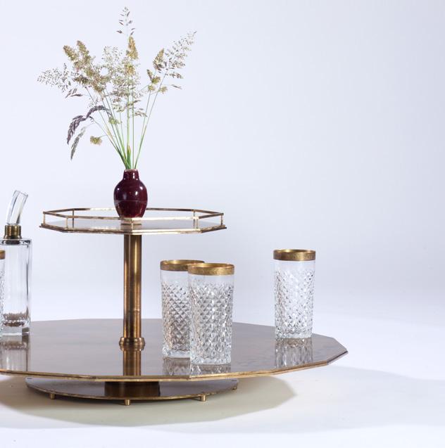 B.B. - The double decker solid brass platforms sit on individual heavy-duty ball bearings encased deep inside the central brass trunk support. The platforms turn smoothly and individually in both directions and can hold heavy objects. This piece is one of my favouritesI love the glorified Lazy Susan
