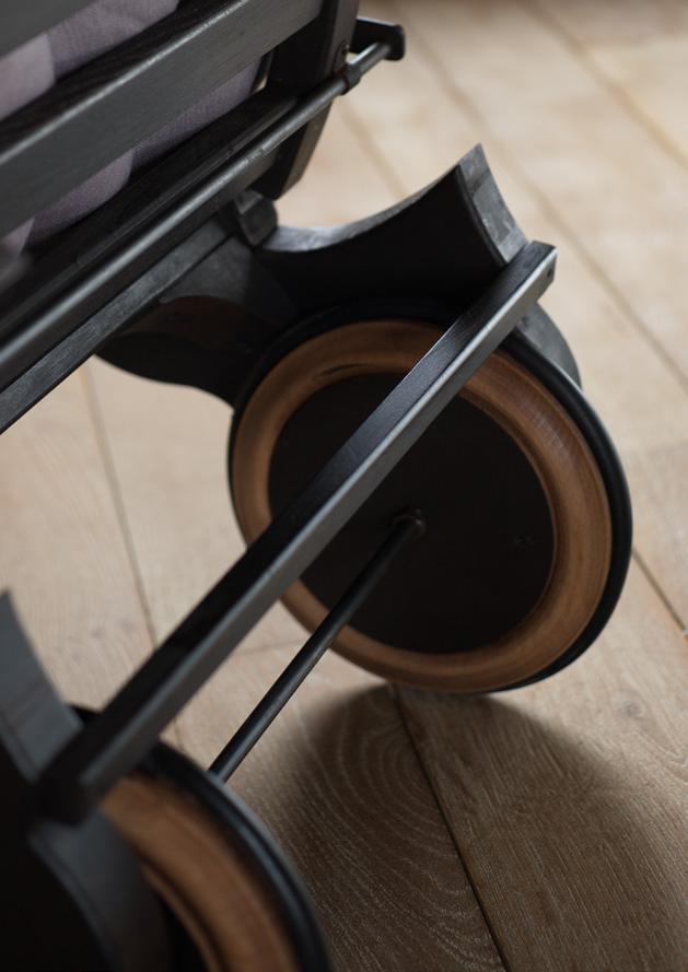 B.B. - I love the crazy extended wheel barrow effect. The design taken from an original unearthed in the depths of the Corsini Palace attics. At home on a terrace or in a library. When vertically positioned this piece takes on an almost sculptural quality