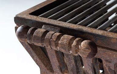 B.B. - After I finished Spinaltermine, we had an open fire alongside the outside dining table and it made perfect sense to adapt the fire grate to incorporate a BBQ cooking grill