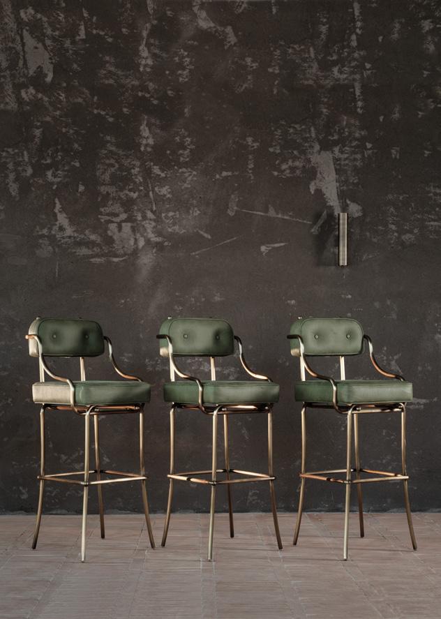 Designed for The Bar Centrale at the heart of the Ristorante Alle Scuderie, the green Bar Chair, a new element of the B.B. for Reschio range