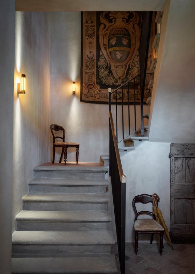 B.B. - I chose a very heavy brass to give this lamp gravitas. It illuminates the centuries old stone staircases in the Hotel Castello di Reschio. It is ideal, providing a discreet yet effective light