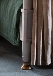 Specifications: solid beech construction - intricate posts with brass plated top and bottom Oriental inspired finials – able to take either a shallow box base divan, or classic Italian sprung slats - Measurements: w-207cm d-222cm h-247cm