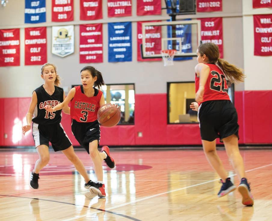 They understand how to motivate girls, working diligently to teach leadership, selfconfidence, wellbeing, collaboration, and resilience. Mentorship begins in Middle School, with Upper School students assisting the coaches, and younger studentathletes see the future ahead of them as competitors and leaders. And best of all, at Castilleja the girls’ teams aren’t just part of what we do, they are everything we do. Your child’s team will be at the core of our planning, and our entire community comes out strong to support our student-athletes, whether they are just starting a new sport in 6th grade or getting recruited at the collegiate level. With eleven sports offered each year and three-quarters of our students participating in at least one season, there is a place for every athlete to thrive within our athletic program.