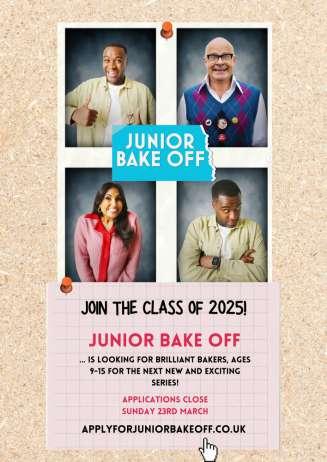 Love Productions are looking for contestants for the next series of the Junior Bake Off. This is open to all children aged 9-15 years, with filming taking place in July. Please note that applications should be in by Sunday 23 March. Call Hannah on 02070674833 with any questions!