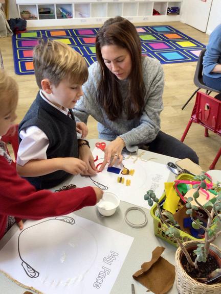 The children and their parents then created some wonderful self portraits, using a variety of craft materials Pasta noses, woollen hair and pipe cleaner eyebrows! Lots of fun was had and the finished artwork looks fantastic on our classroom walls.