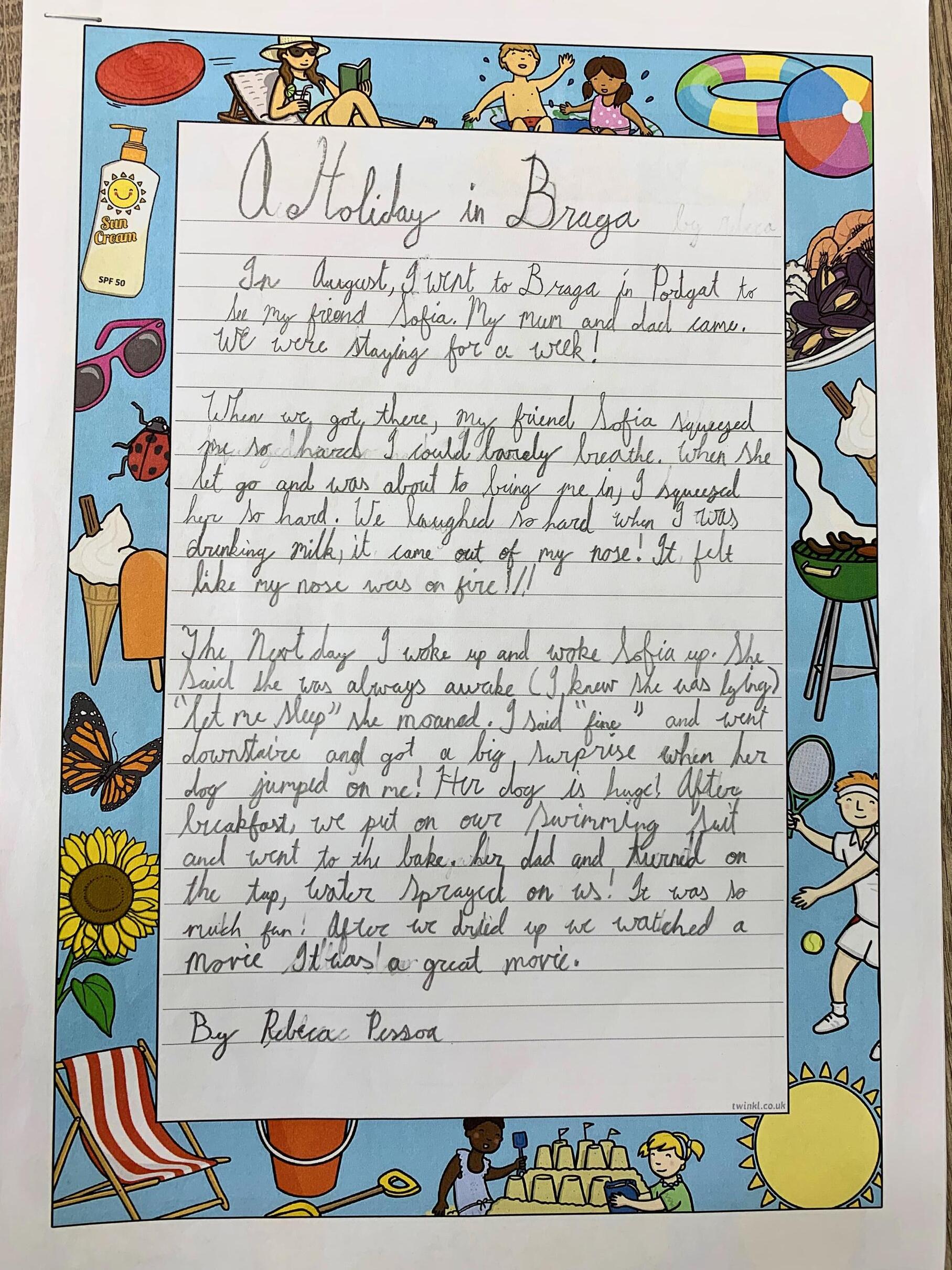 Children can submit a piece of writing they have worked on, in class, during the month. It could be a piece they are particularly proud of or a piece that shows they have achieved their current writing target.