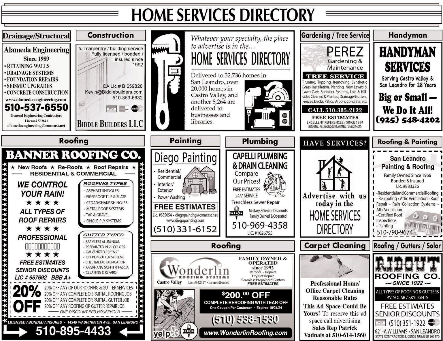 You can run a classified ad for a little as $30 a week. Your ad runs in both of our newspapers, the Castro Valley Forum on Wednesday and the San Leandro Times on Thursday. You can also save $5 by placing your ad on our website at castrovalleyforum.com or sanleandrotimes.com. We’ll call you for your credit or debit card info for payment. To place an ad by phone call Patrick Vadnais at 510-614-1560, Mon-Fri 9 a.m. - 1 p.m.