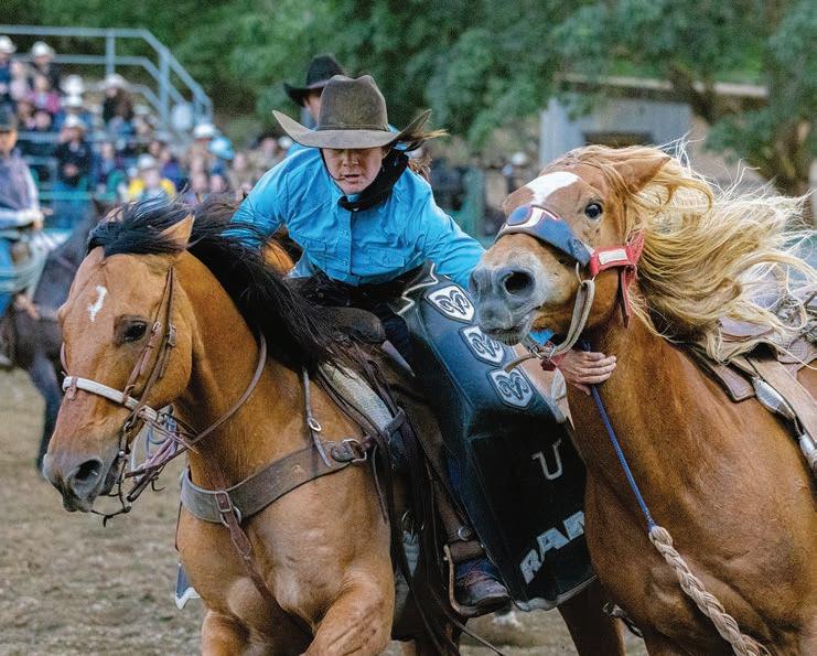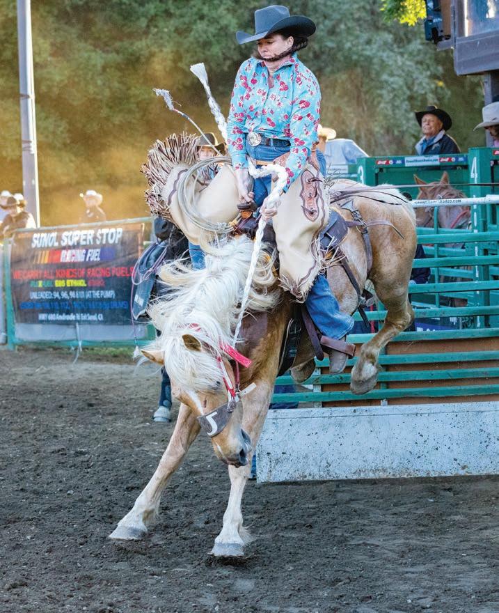 Rodeo highlights for Saturday and Sunday included a winning 78.5 ride for Wyoming bareback rider Coy James Montgomery on Flying U Rodeo’s bronc Michaela’s Madness. Not to be outdone, the California cowgirls showed off their stuff in the ladies breakaway roping event. Suzanne Williams from Standish, CA, took home the winning time with a 2.4-second run. Maggie Usher from Santa Ynez was second in the feld with her 3-second time, while Cathy Cagliari Corning, CA completed a 3. -second run for third place.