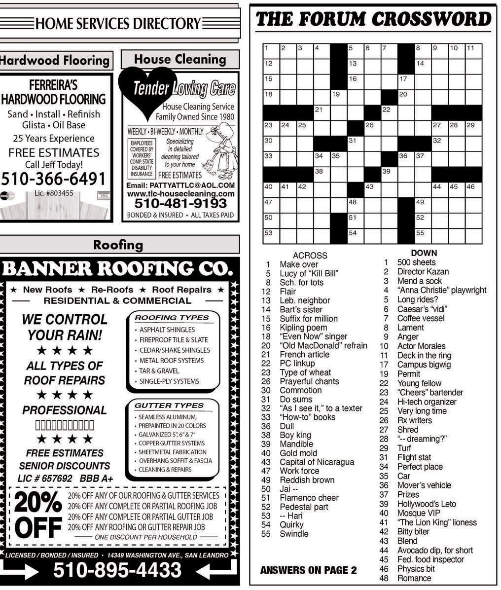 Dumping: County Installs ‘3 E’s’ Plan 1881 Astor Drive-Directions: Lake Chabot Rd. is Open. Use View Drive or Fairmont to Lake Chabot Rd. to Club @ Astor Dr. during construction. See website “BOVSWIM.COM “ FOR ALL OUR CLASSES AND FEATURES. *Previous members of 12 months or less are not eligible for this promo. Not to be combined with any other ofers. All Club features are included in your monthly dues. Except Babysitting, Swim lessons, Massage and Personal Training COMMIT YOUR FAMILY TO BE FIT! 8 NEW CHAMPIONSHIP PICKLEBALL COURTS W/40 classes per month of other group exercise classes Indoors & outdoors gym Yoga w/7 classes a week Monthly Dues Families = $299 Monthly Dues Singles = $279 FREE MONTH w/Annual Dues, Pay for 11mo. get 12mo. FREE O er exp 5/31/2024 Swim Lessons Available for Members Only When you join early and pay for your 1st month dues MAY FREE One Time Initiation Fee (May Only) $1500 Family now $700 Save $800 $800 Single now $500 Save $300 CHRISTMAS SPECIAL 2 Free Lockers 1 for each Spouse for 1 year. CROSSWORD PUZZLE ANSWERS May 30 May 23 Jun 13 Sun sets at 8:16 p.m. today, rises at 5:52 a.m. Thursday. Jun 5 Almanac Moon Phases Wednesday Sunny High 77° Low 51° Thursday Partly Cloudy High 76° Low 51° Sunday Partly Cloudy High 70° Low 51° Friday Partly Cloudy High 72° Low 53° Past Week’s Rain: 00.00 Season To Date: 25.40 Normal To Date: 00.00 Season Average: 00.00