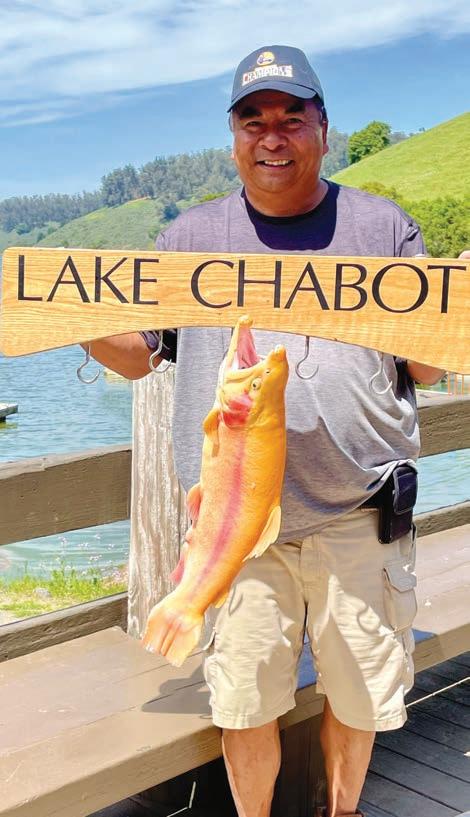 Castro Valley resident Bob Nator caught this lightning trout at Lake Chabot on Thursday, April 18. It measured 24” and weighed 8 pounds and was caught from the shore. Congratulations on the reat Catch,’ ob ave a reat Catch’ you’d li e to share? Please send a photo and information by email to: flesforforum gmail.com