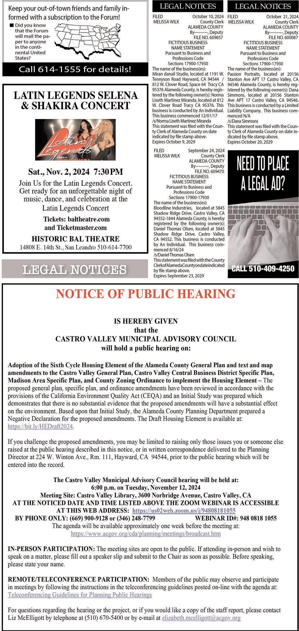 COMPILED BY MICHAEL SINGER • CASTRO VALLEY FORUM