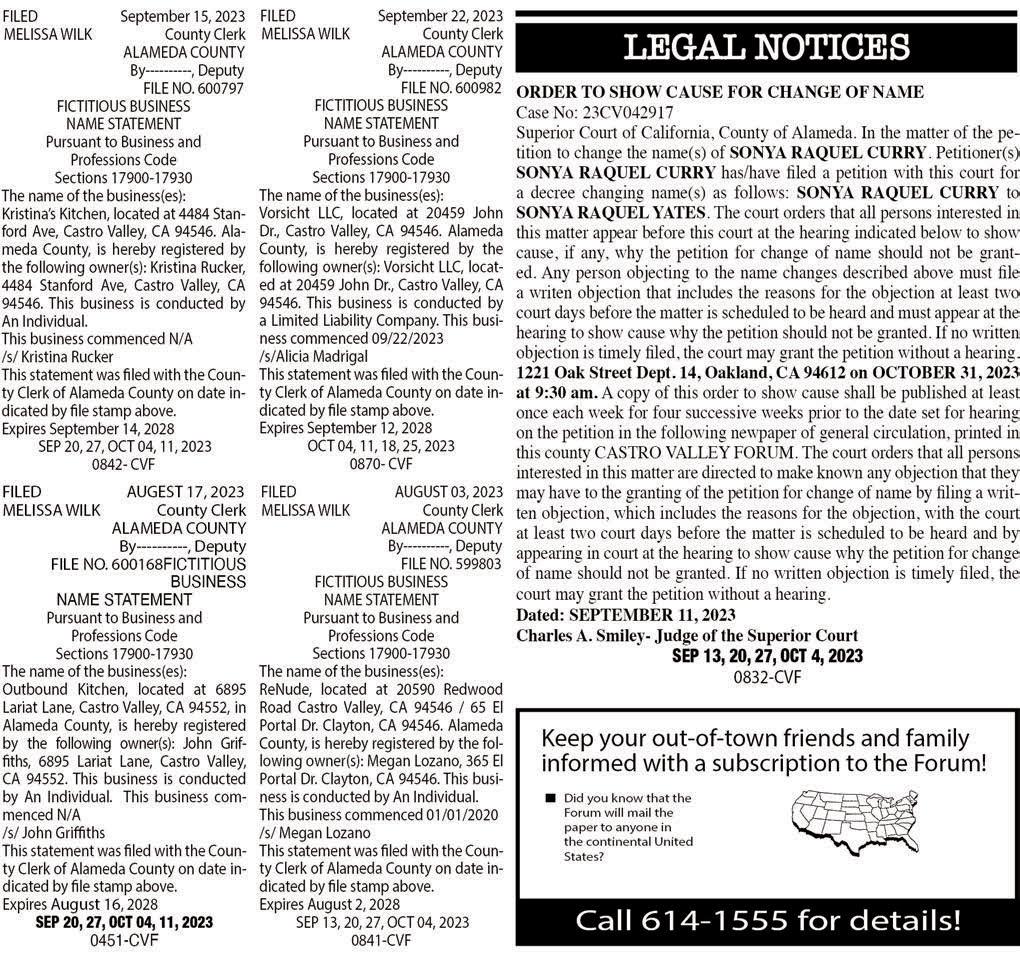 COMPILED BY MICHAEL SINGER • CASTRO VALLEY FORUM