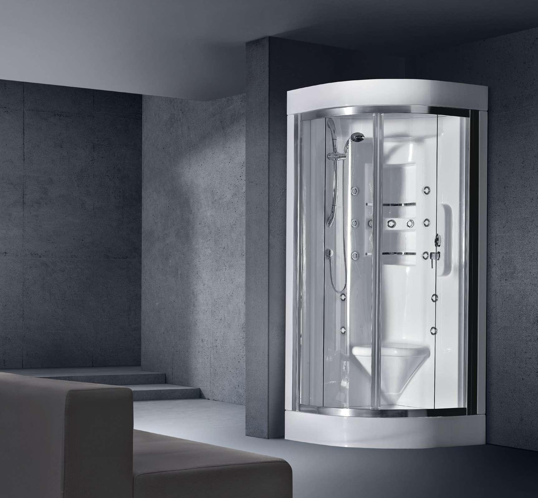 Il fascino di una sinuosa linea semicircolare conferisce alla cabina doccia una morbida eleganza che la rende protagonista dell’arredobagno. Un design semplice e pulito racchiude le funzionalità di bagno turco e di idromassaggio, verticale e cervicale. La comoda seduta garantisce la massima sicurezza.