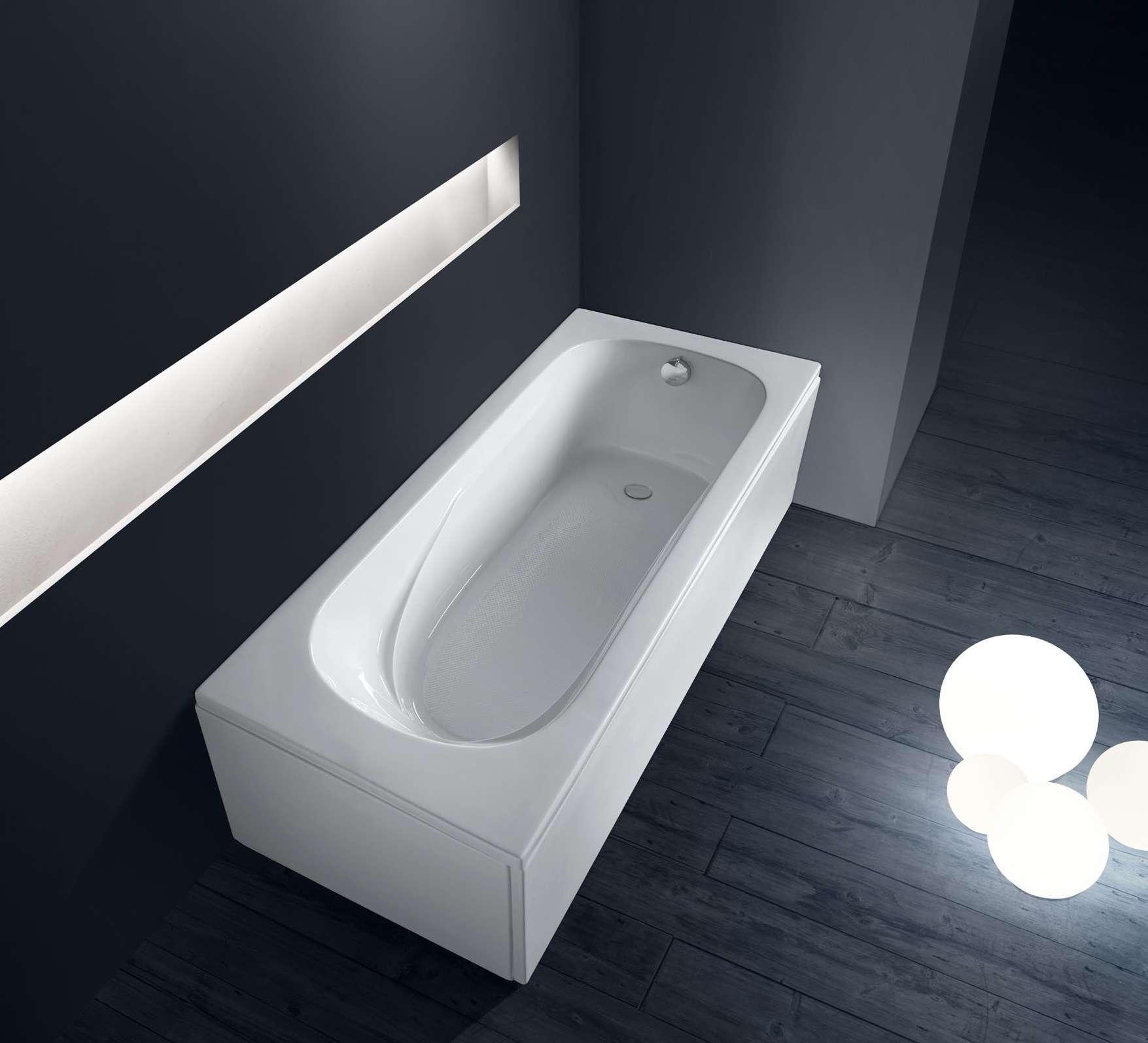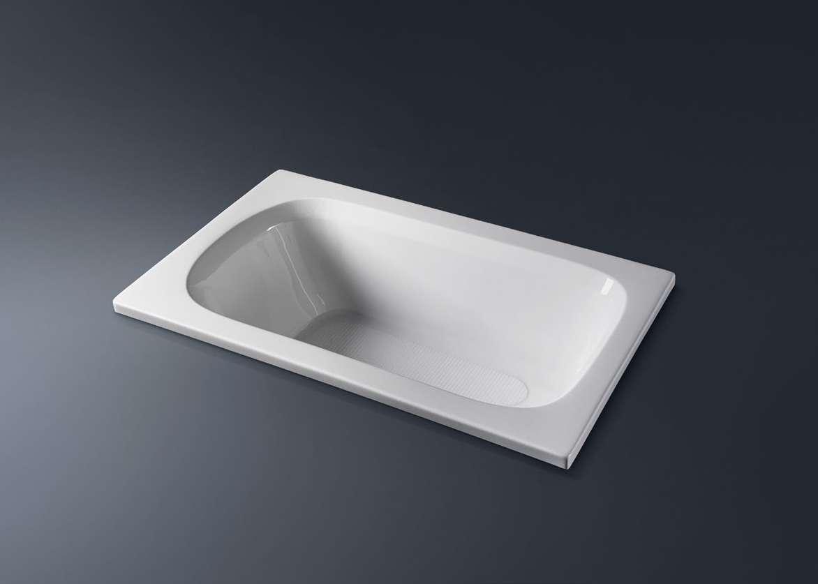 Il design della classica vasca da bagno rettangolare viene rivisitato in una chiave più morbida e leggera, grazie agli angoli leggermente stondati.