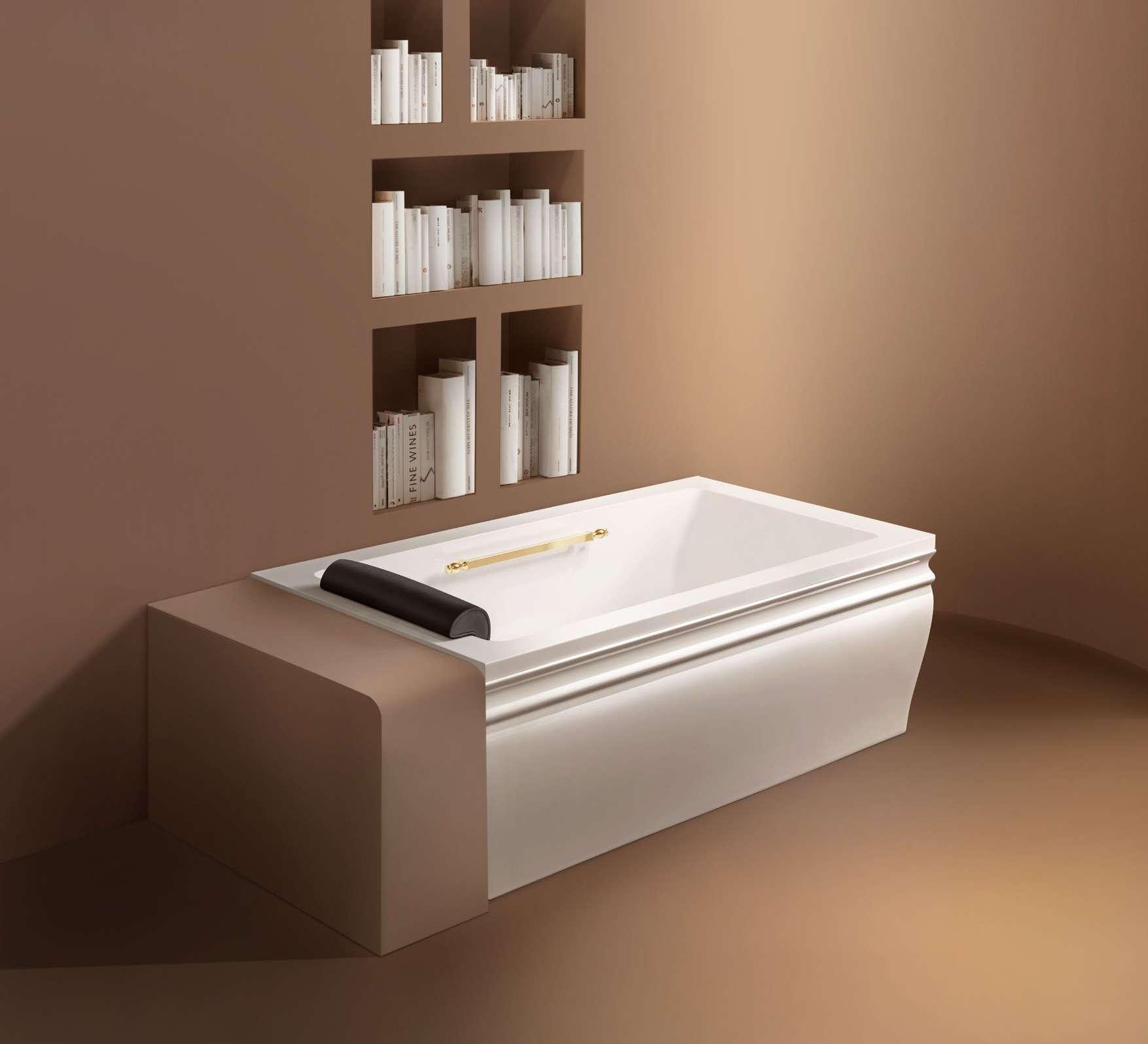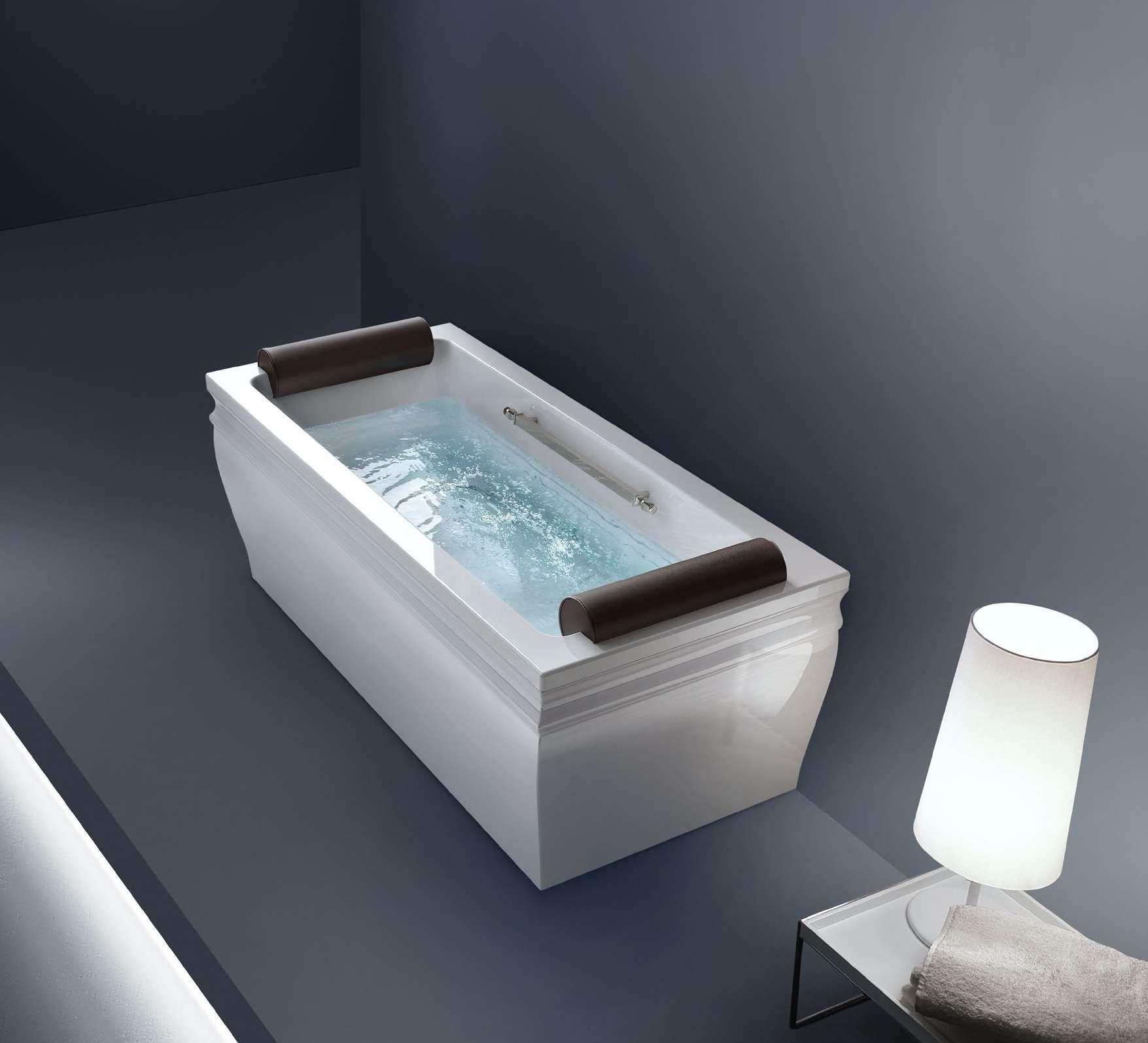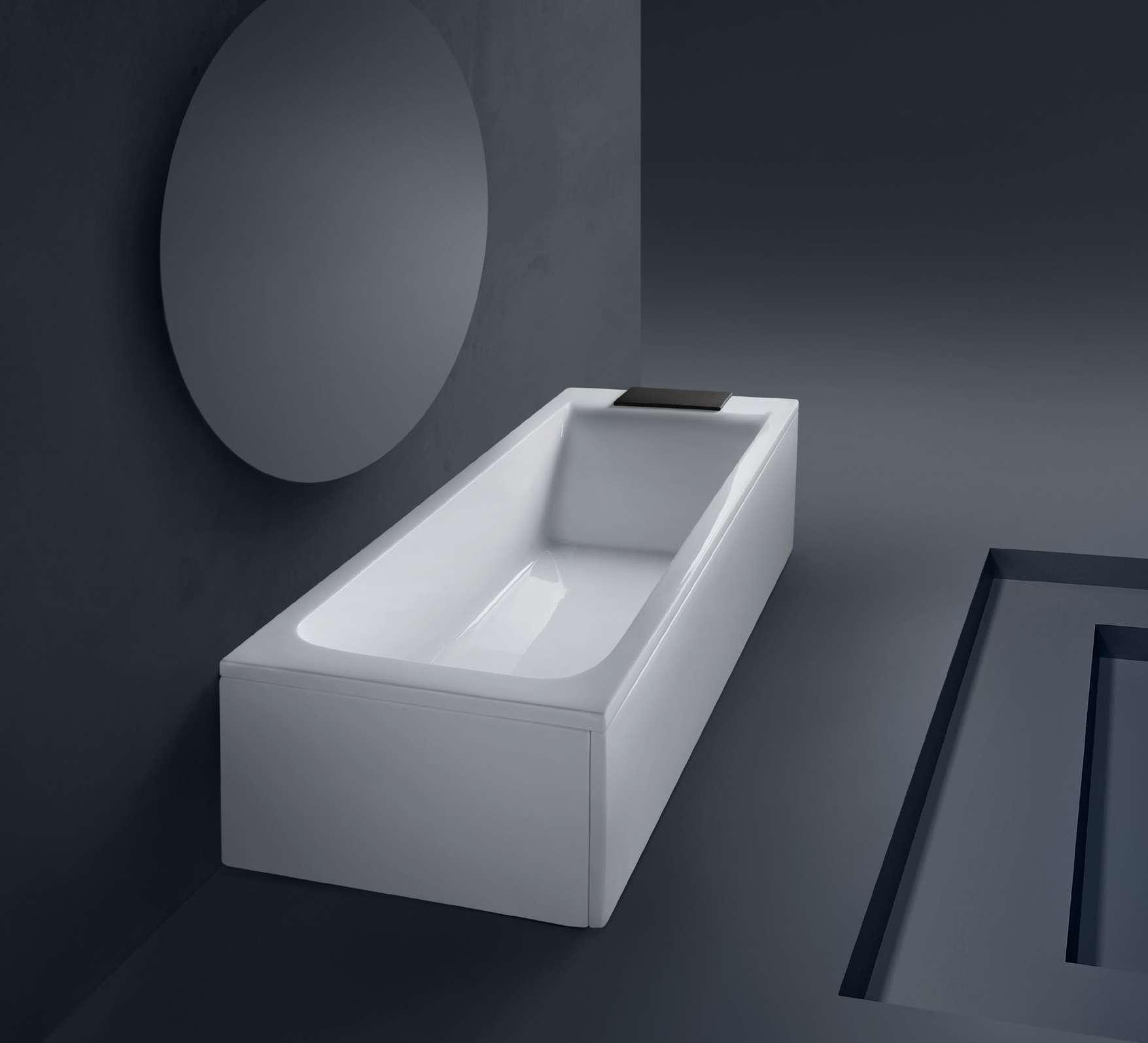 The most classic rectangular bathtub’s design is revisited in a softer and lighter way, thanks to the slightly rounded corners.