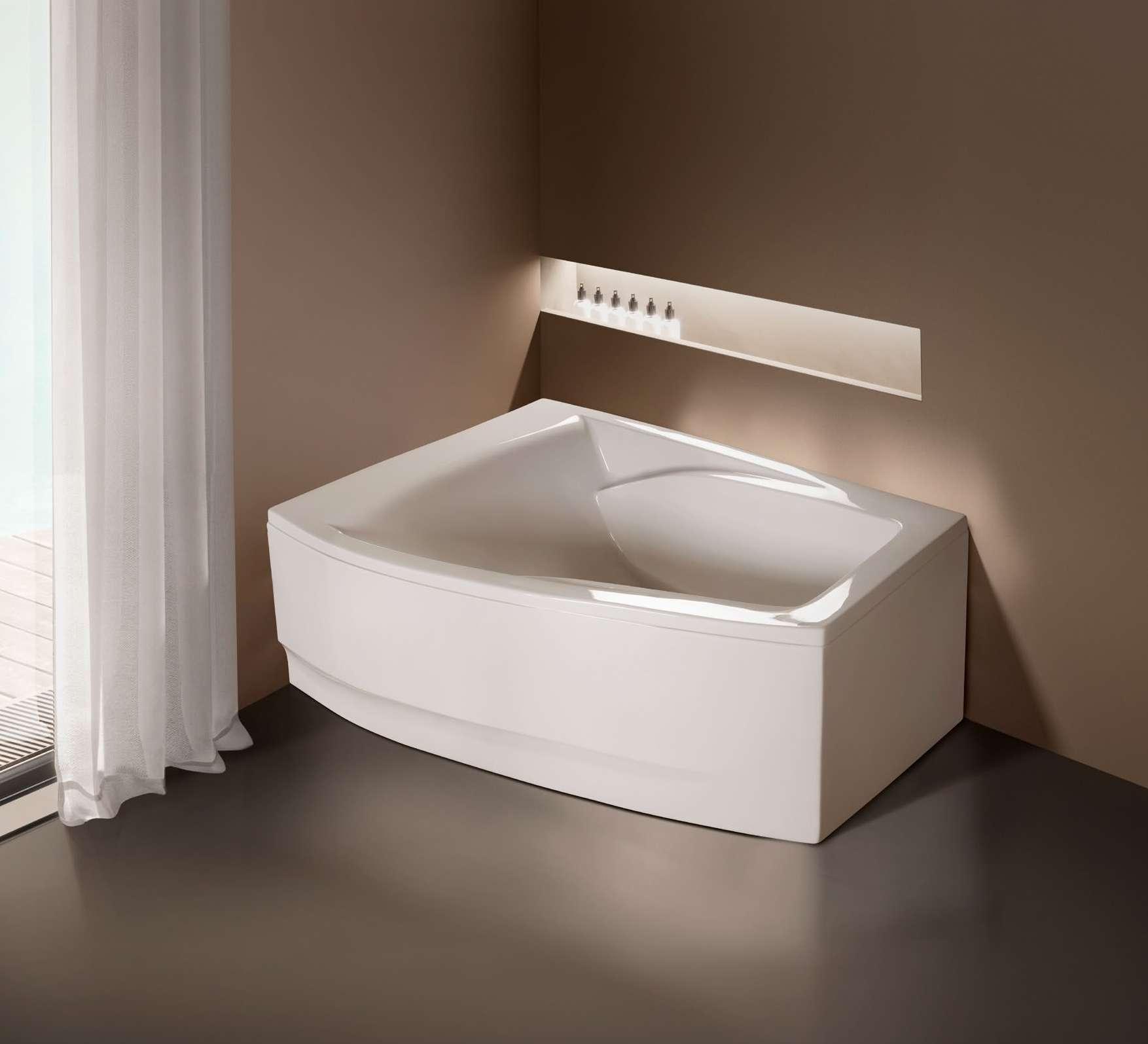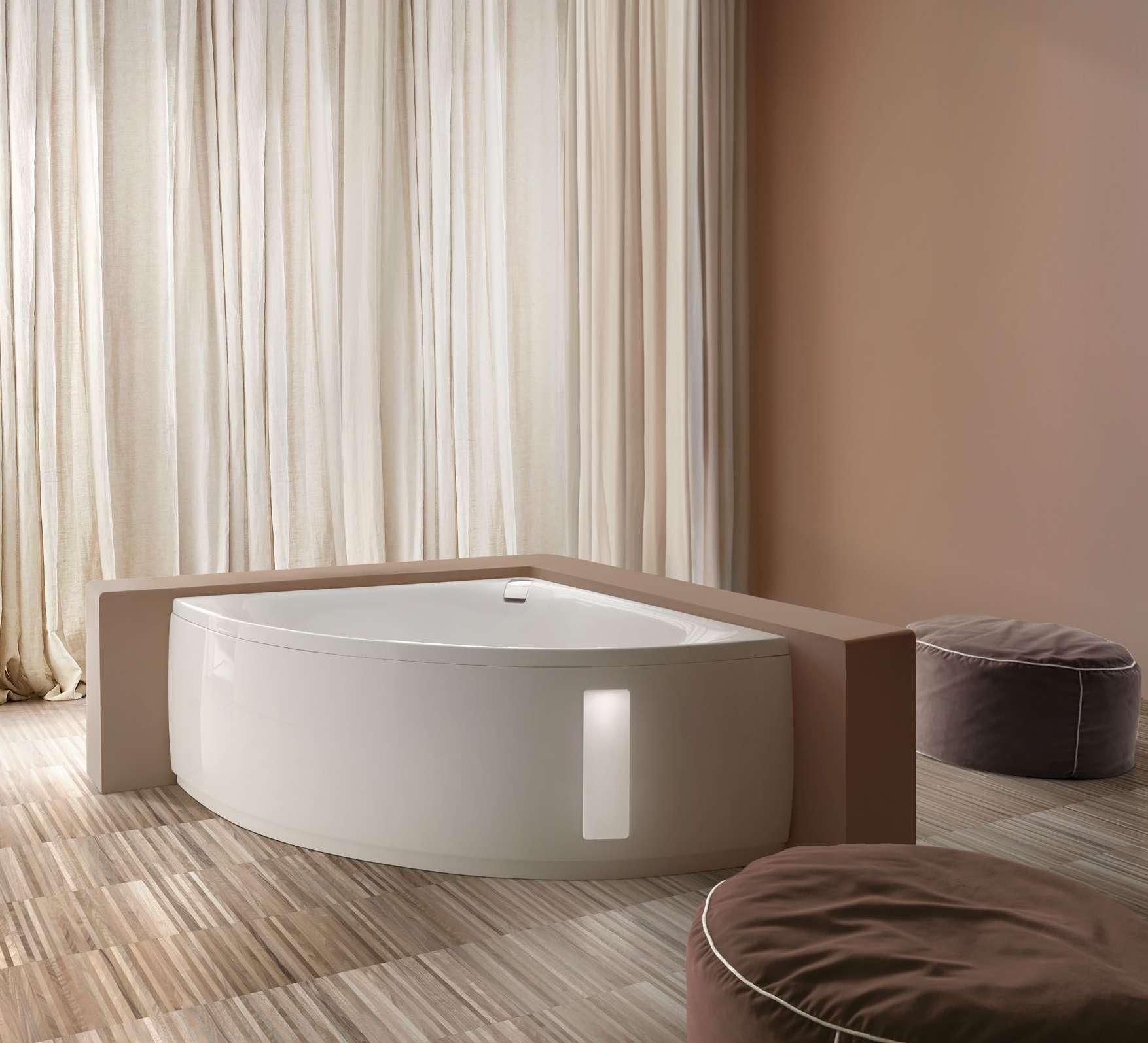 Una vasca da bagno originale progettata per un’installazione angolare può donare un carattere deciso al vostro arredo bagno.
