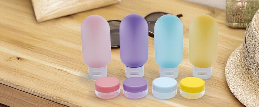 Botella con cierre de rosca y recipientes con cierre a presión • Plástico • Transparente con verde y azul • 2 recipientes de 14 x 14 x 6 cm (500 ml) • 4 utensilios de 15 cm • 2 botellas de 8 x 8 x 13 cm (500 ml)