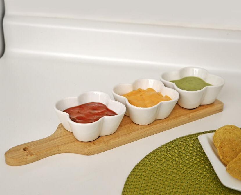 Blanco con anaranjado • Plástico • 6 hueveritas de 5 x 4 cm • 6 cucharitas de 14 cm