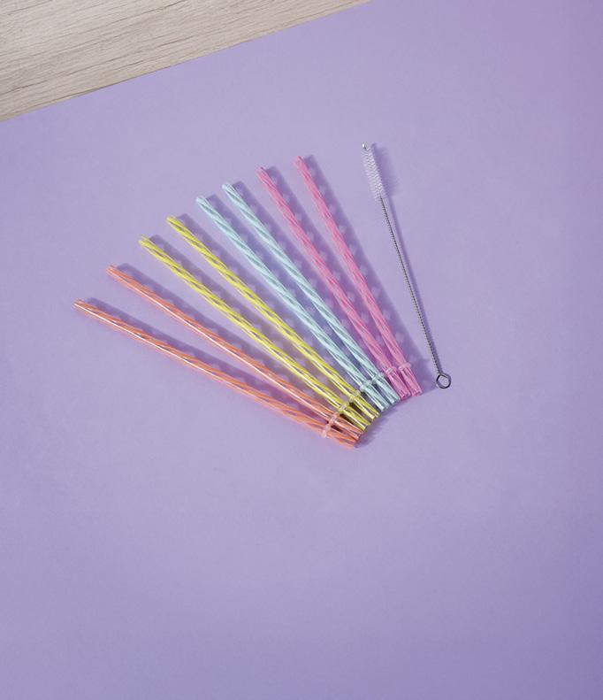Naranja, fucsia, verde y amarillo • Plástico y metal