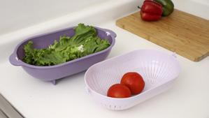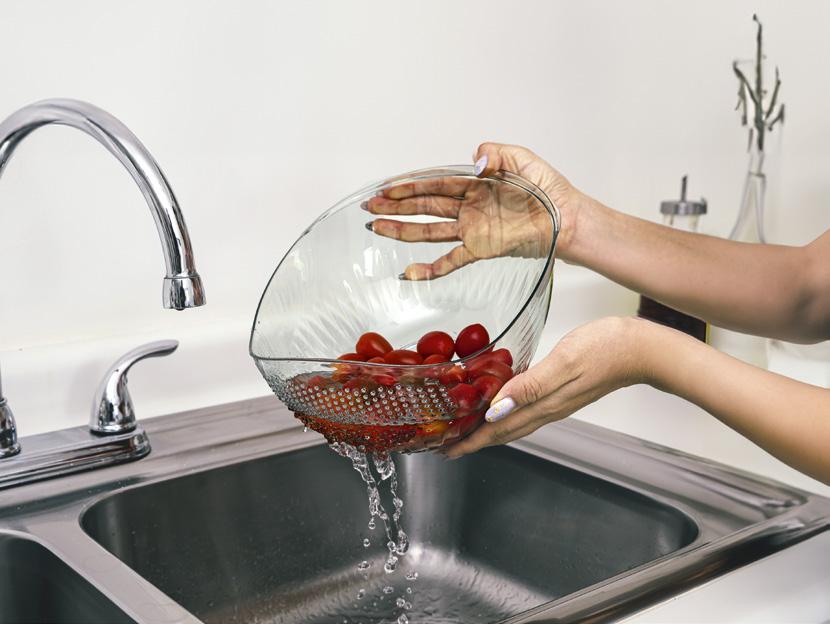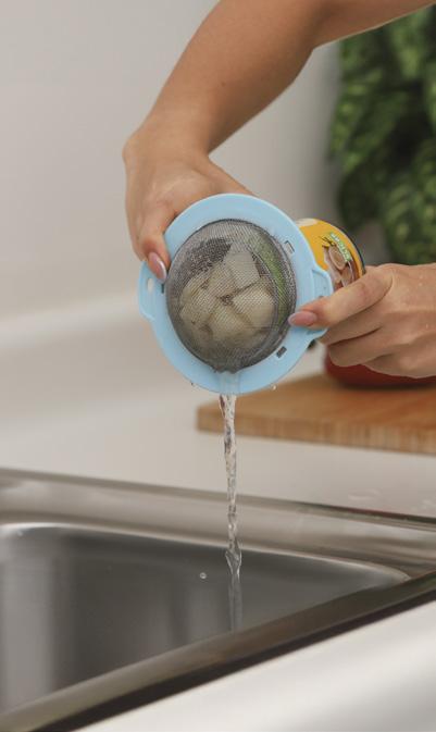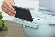 • Escurridor gira para drenar el agua fácilmente • El tazón y el escurridor se pueden utilizar por separado • Verde menta con blanco • Plástico y acero inoxidable