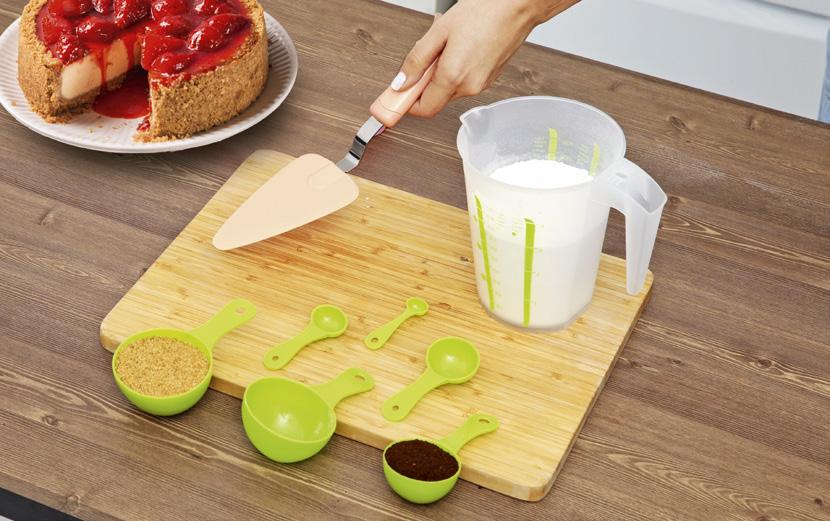 • 1 tazón de 24 cm de ancho x 26 cm de largo x 11 cm de alto (1,7 litros) • 1 escurridor de 8 cm de alto x 19 cm de diámetro • 1 pieza de 18 cm de ancho x 26 cm de largo