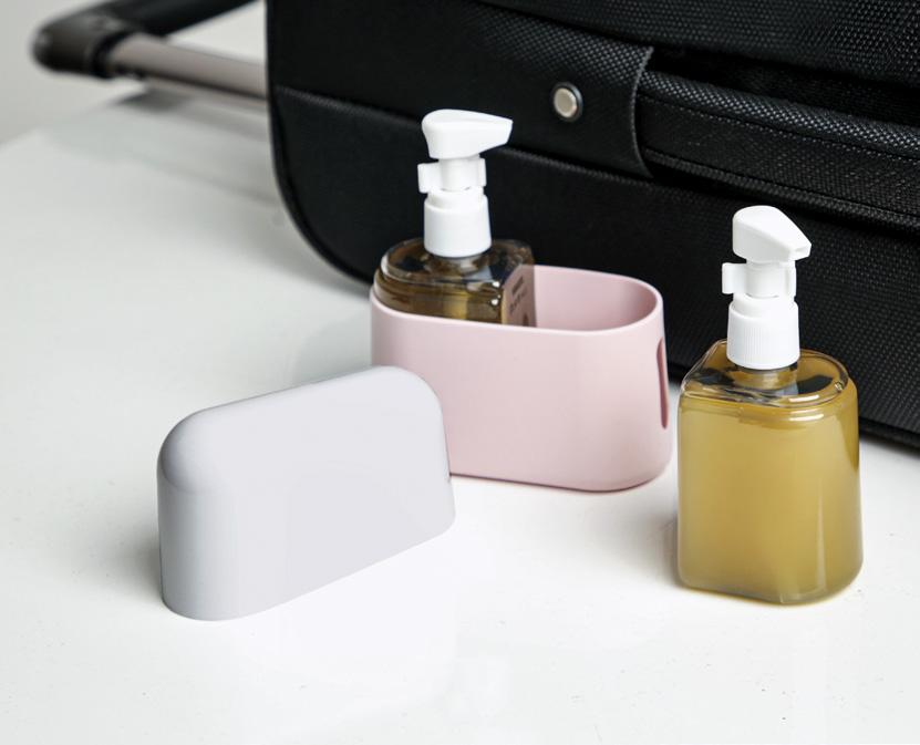 Transparente con silicón azul • Plástico y silicón • 1 recipiente de 11 cm de ancho x 17 cm de largo x 7 cm de alto (700 ml) • 1 recipiente de 7 cm de ancho x 10 cm de largo x 4 cm de alto (150 ml)