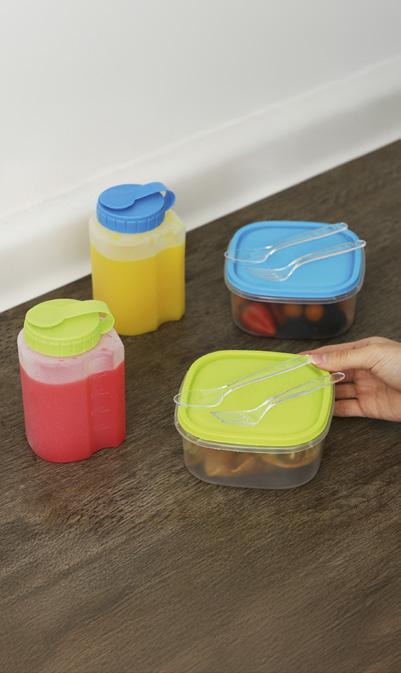 • 4 utensilios de 15 cm de largo • 2 botellas de 8 x 8 x 13 cm de alto (500 ml)