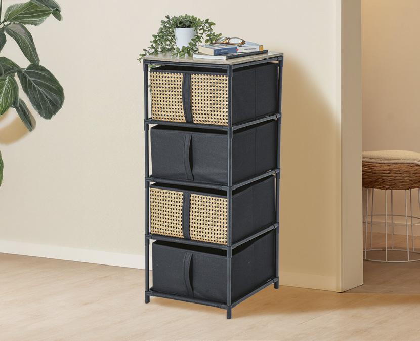 Naranja con negro • Acero de carbono y plástico • 1 estuche con cierre de clip de 9 x 16 x 4 cm • 1 alicate de 13 cm • 1 mango para puntas de 11 cm • 1 martillo de 11 cm • 10 puntas para destornillador • 1 cinta métrica de 40 cm • 4 cubos • 1 extensión para destornillador