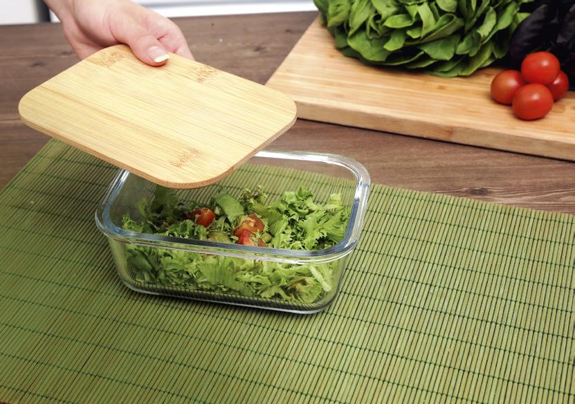 • Vidrio refractario y bambú • 750 ml • 13 cm de ancho x 17 cm de largo x 7 cm de alto