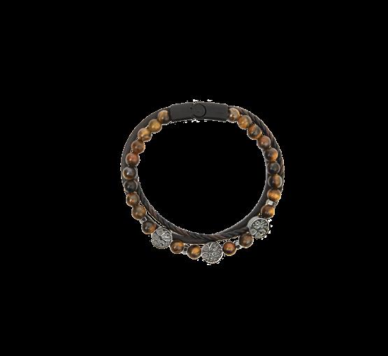 Pulsera con cierre de clip • Beige con dorado • Cuero genuino, acero inoxidable y pulsera de cobre • 1 pulsera de 6 cm de diámetro (cerrada) • 1 reloj de 22 cm de largo x 4 cm de diámetro