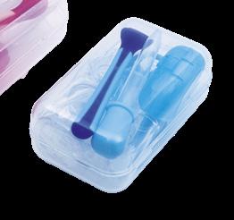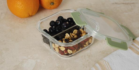 1 recipiente de 9 cm de alto x 13 cm de diámetro (650 ml) • 1 recipiente de 7 cm de alto x 10 cm de diámetro (300 ml) • Plástico y silicón
