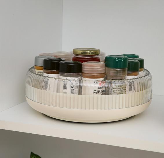 Altura ajustable | Con 4 compartimentos removibles | Base antideslizante | Blanco | ABS, termoplástico y polietileno | 26 cm hasta 37 cm de alto x 27 cm de diámetro