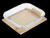 1 ba se de bambú | 1 refractario de vidrio de 23 cm de ancho x 26 cm de largo x 5 cm de alto (1,4