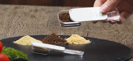 1 ba se de 12 cm de ancho x 14 cm de largo x 13 cm de alto | 1 salero y pimentero de 7 cm de alto x 5 cm de diámetro (80 g) | Con tapón en la base | Poliresina