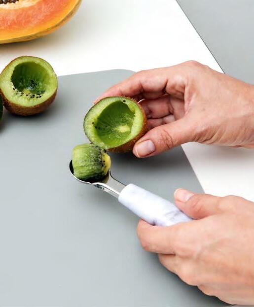 El utensilio para hacer bolitas cuenta con cortador para tallar creativamente la fruta