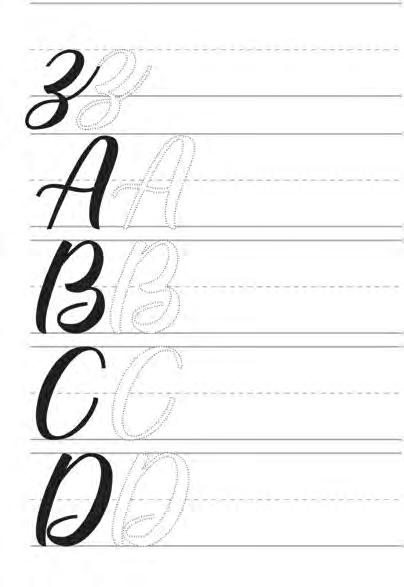 8 folhas (frente e verso) com exercícios de B rush Lettering + 52 folhas em branco