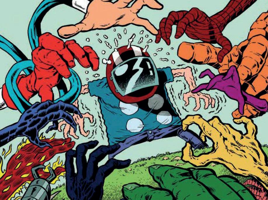 Ed è così che Bacter. egli stesso. diventa fumetto, una me ta-creatura fatta di carne e sangue / carta e inchiostro. Un supereroe dal volto celato da un casco da motociclista. Eppure questo mistero è un espediente per dichiarare al lettore le più intime pulsioni. Il lettore diventerà a sua volta Bacter, nella magia del transfert che avviene tra lettore e protagonista della storia narrata.