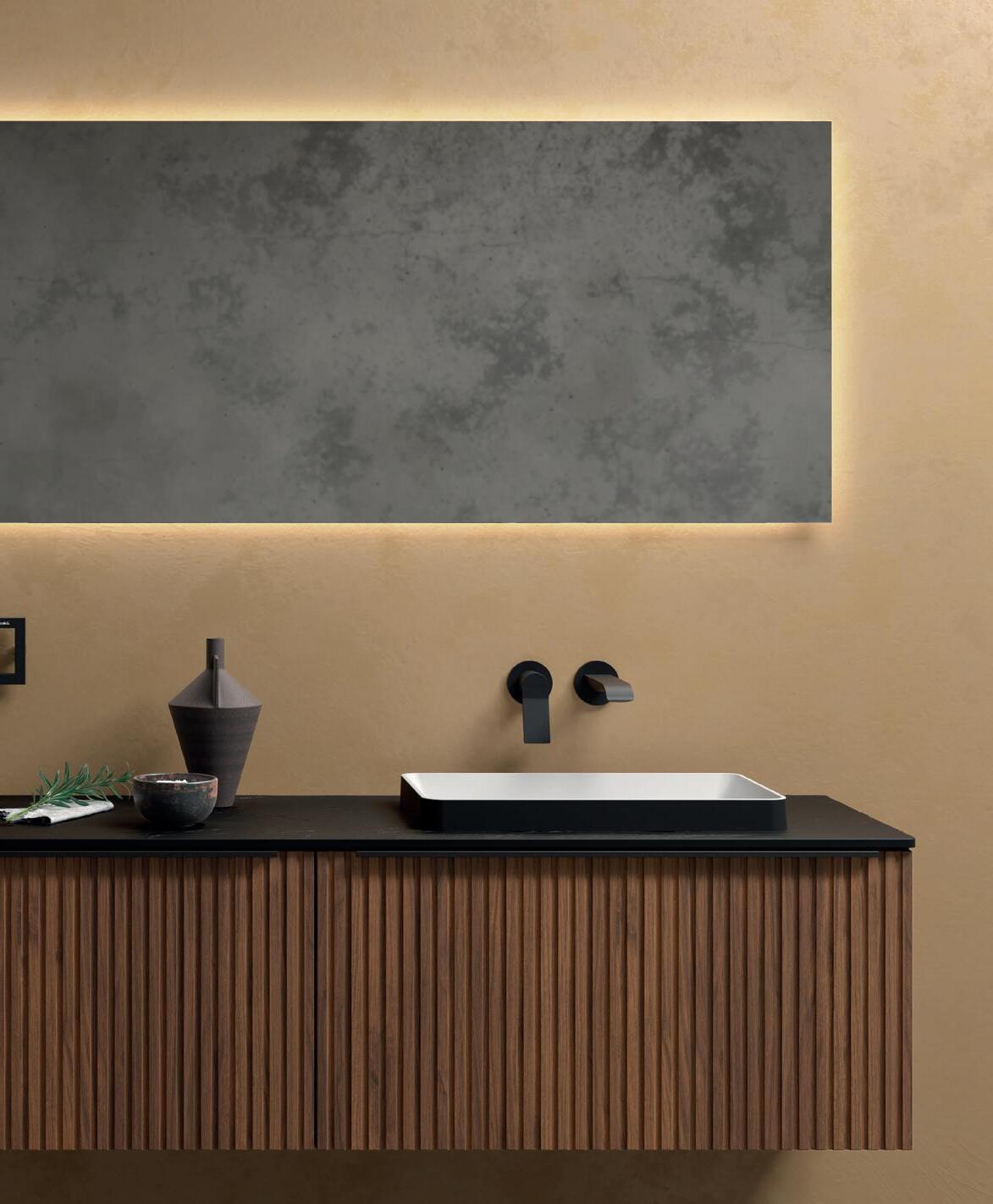 Elegante Materialien und überraschende Kombinationen für ein elegantes Bad