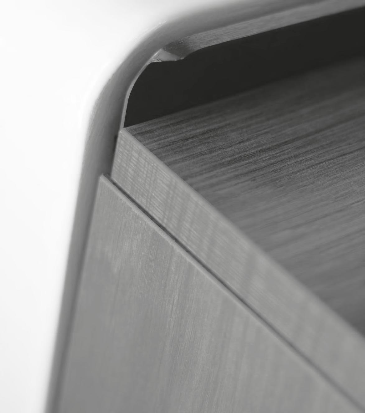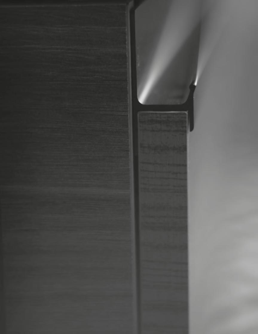 Ihre Fronten, die durch saubere Leisten und seidenmatte Lackierungen de niert sind, scha en ein gelassenes und anspruchsvolles Zusammenspiel von Volumen.
